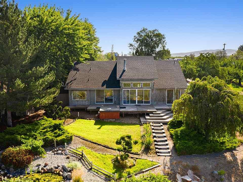 Your own secluded country estate. The experience begins as you enter the driveway and pass the abundant mini-wine vineyard. They have sold these grapes to local wine makers. As you walk to the front door, you’ll be greeted by the cozy courtyard with delicious table grapes. But the magic happens as you step inside and take in the mesmerizing valley views. This home was built to take in the 180-degree view from almost every room. Step out to the expansive deck with hot tub and enjoy the sounds of the waterfall & lily-pad filled pond. Living room features vaulted ceilings plus free-standing woodstove. Brand new roof just installed. The lower level is unfinished and perfect for extra storage and wine cellar. The grapes & lawn are irrigated w/SVID with automatic solenoid valve system. The irrigation system at the house is self sufficient and low maintenance. A truly unique home that is hard to find with this much to offer.