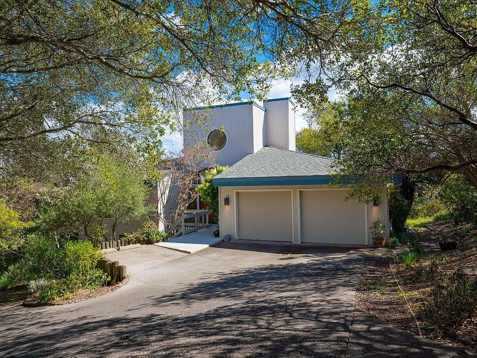 Discover a unique, contemporary home tucked down a private drive in the desirable Montecito Heights area. Experience the dramatic entry with a barrel ceiling encased in wood and beautiful hillside views. The main level offers a seamless flow of single-level living, featuring an inviting primary suite, a spacious living room, an elegant formal dining area, and a well-appointed kitchen boasting a gas range and built-in SubZero appliances. On the lower level discover a cozy family room, two additional bedrooms, a full bathroom, and a convenient laundry room. Throughout the home, stunning architectural details include high ceilings, custom windows, mahogany wood features and built-in cabinetry, The southerly exposure welcomes serene vistas and abundant natural light which shines throughout the home. Outdoors, established trees and lush landscaping provide privacy and a tranquil setting. Enjoy the solitude so close to restaurants, conveniences and the bounty of Sonoma Wine Country.