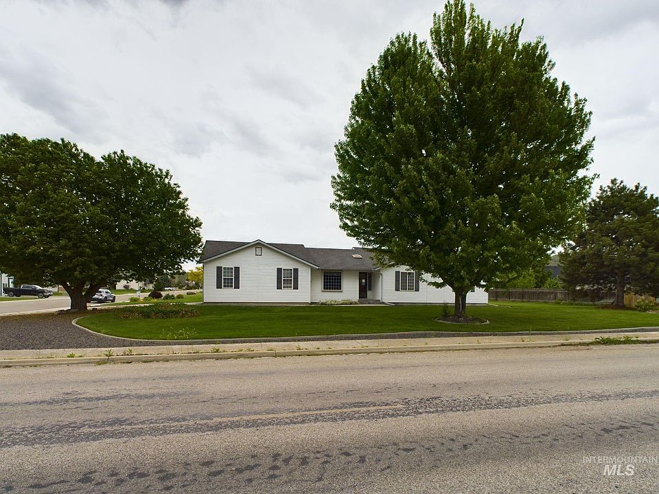 Over 1600 sq ft 3 bedroom, 2 bath with 3 car garage on corner 1/2 acre lot. EZ access to Hwy 16. Vinyl siding. Open concept kitchen, eating area, and living room set up for easy entertaining. Pellet stove, formal dining room. French doors to deck overlooking a beautiful back yard. Curbed landscaping around flower beds. Garden area. Storage or tool shed with attached dog run. Auto sprinkler system.