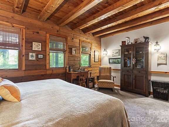 Beautiful, authentic log home nestled on three private wooded acres in sought after Mount Ulla, NC. Many updates and custom renovations, new LPV flooring in most of the home, renovated kitchen and bathrooms. Cozy stone, wood burning fireplace in great room graced by large picture windows. Oversized primary bedroom with en suite bath, two walk in closets. Many custom extras make this four bedroom, 3 full bath plus bonus room, a true piece of paradise. Additional climate controlled, 288 sq ft space for art studio/man cave. Although far from heavy traffic and housing developments, this home is only 15 minutes to I-77 and 10 minutes from downtown Mooresville. There is the ability to build a small 640 sq ft home, MIL suite, airbnb, rental on the acre to the right of the driveway, it does perc. That part of the land has a pole barn with a new roof, fruit trees, garden and chicken coop.