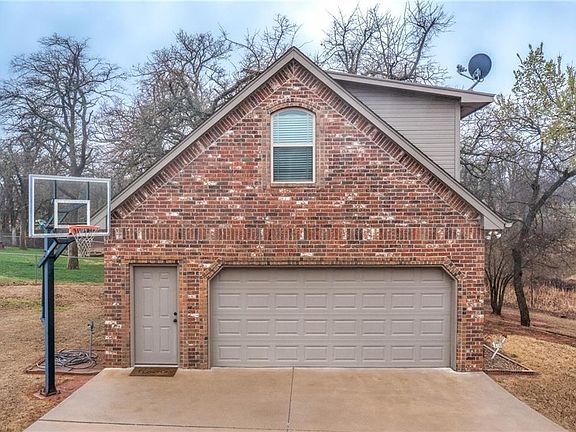 ONE OWNER, NO HOA, ONE ACRE+ ON CUL DE SAC, BLANCHARD SCHOOL DISTRICT, ADDITIONAL DETACHED BRICKED GARAGE WITH FININSHED HEATED & COOLED BONUS ROOM UPSTAIRS WITH HALF BATH OFFERING 423sqft OF ADDITIONAL LIVING SPACE NOT INCLUDED IN SQARE FOOTAGE. Beautiful wood floors, granite counters, detailed crown molding throughout with Georgian ceiling in living area. Private primary bedrooms custom features includes built ins, whirlpool tub, double vanities, additional dressing area & expansive closet. Secondary bedrooms offer spacious double closets and bath with separate sinks, ample counter & storage space. Backyard is ready for entertaining with large in ground saltwater pool, covered pergola & 10x10 storage shed. Outdoor safe room is conveniently located under covered patio & very roomy. Patio is wired for TV including bracket. All mechanicals have been recently updated : HVAC 2019, stove & microwave 2023, well pump & pressure tank 2022-Hot water tank 2022. Make plans to tour today!