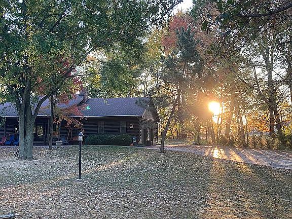 Beautiful log home in a park-like setting on ten acres. Lots of trees and open fields with an underground dog fence with two collars that cover 8 of the ten acres. The lake is about two acres and fully stocked. The home has two large bedrooms with a sunroom that is used as a third bedroom, and it has its own heat and a/c. Lots of updates including all lighting, full remodel of the master bath and a very large colored and stamped patio has been added to the front of the house facing the lake. The ceilings in the great room are 18 feet tall and there’s a fireplace insert in the room as well. The bathrooms are both large. The property is perfect for entertaining and enjoying. There is a dock and a gazebo at the lake. You will never encounter more beauty and comfort in a property.
