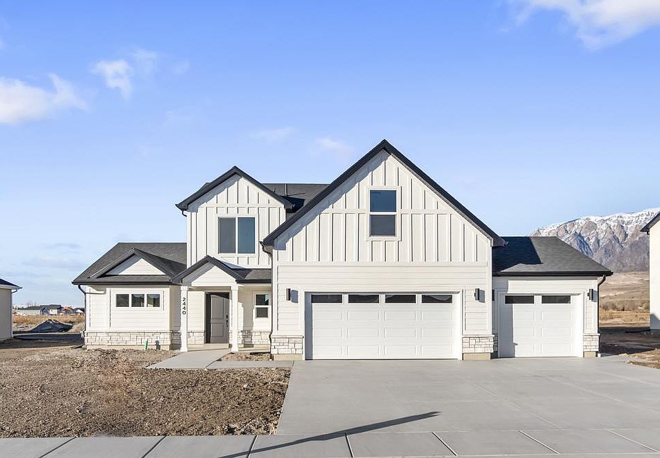 One of our most popular floor plans designs, everything about The Sumac 2-story floor plan is stunning with 4 beds and 2.5 baths. Walk through the entrance to see floor to ceiling windows in the family room, which bring plenty of natural light into the space, for a bright and cozy space leading into the kitchen and dining. A walk-in pantry and island to the kitchen provide both storage and counter space for all your cooking needs. Discover the owner's suite with gorgeous windows, an owner's bath, and walk-in closet also featuring windows. Up the stairs, a loft which is open to below with railing invites the light in from the family room floor to ceiling windows, and can be used as a lounge or study space. With three bedrooms upstairs, two of which feature walk-in closets. The home also has an electric fireplace, vaulted ceilings in the primary suite, upgraded quartz counter tops, and a separate shower and tub. Also conveniently located close to the 2700 N exit for easy I-15 access
