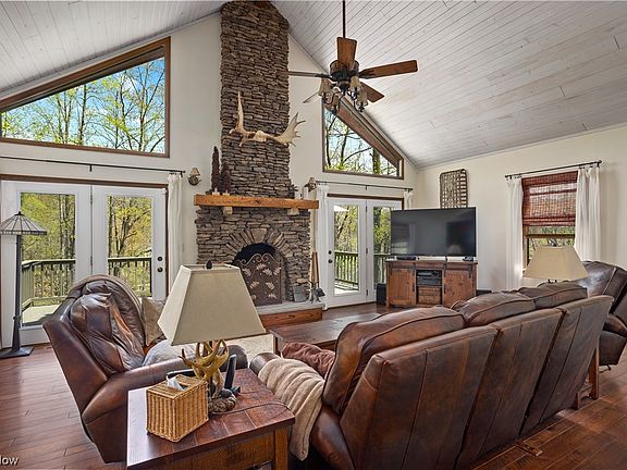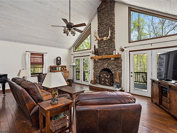 Beautiful home includes a boathouse with lift and adjacent deck, shed, fenced yard and multiple outdoor areas for entertaining and an extra large 2 ½ car garage. This fabulous home has four bedrooms and 3 1/2 baths with more than 2500 square feet of living space on three lake lots. The first floor features an amazing great-room with cathedral ceiling, two-story stacked stone fireplace and a large deck overlooking beautiful Lake Buckhorn. The gourmet kitchen includes beautiful cabinetry, custom pantry, new appliances and granite countertops. The spacious dining area looks out over the beautifully landscaped yard. The convenient first floor owner’s suite has access to the deck overlooking the lake, updated en-suite bath and walk-in closet. The gorgeous white oak flooring runs throughout the kitchen, dining room, family room and owner’s suite. The second floor includes a loft overlooking the family room, two additional bedrooms and a full bath. The walk out lower level has a beauti