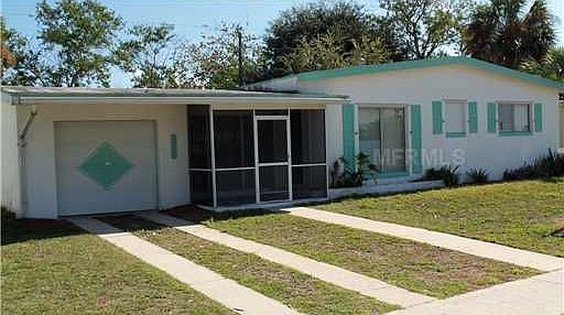 Enter through the front screened porch and you have arrived, home at last. Open front door and notice 20" tile though main living areas. In front of you is living room and to the rear of this home is the fully equipped kitchen with 42" solid wood cabinets, tile backsplash and newer appliances. From the kitchen you can step down into the large family room where you can access the rear yard or the garage. The garage is equipped with shelving throughout and overhead storage. On the other side of this home are the 2 bedrooms and the completely renovated bath. Other newer updates include, A/C, roof, 4" baseboard throughout,