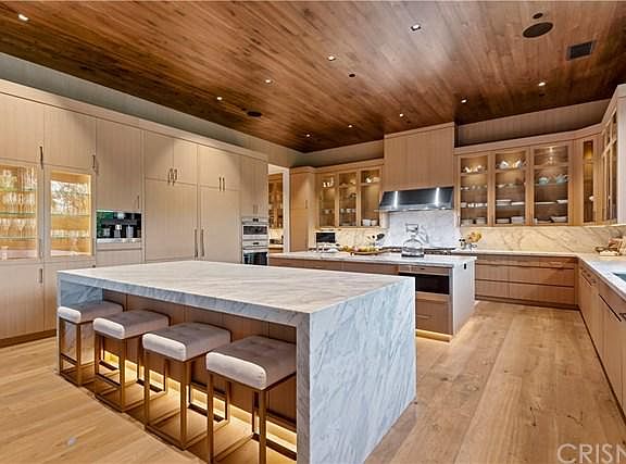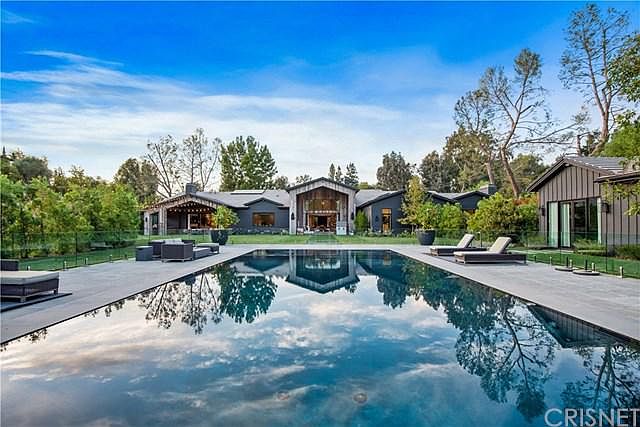 Absolutely stunning newer contemporary farmhouse on an epic nearly 2 acre usable lot in guard gated Hidden Hills. A sensational and unique single story floorplan with a subterranean gym and 10+ car garage. Designed and built with the finest finishes and craftsmanship! Interior features include a grand two story entry, state of the art theater, formal office/library, and a striking open concept double island kitchen/ family room. The massive resort quality grounds are second to none! There is a detached guest house, custom zero edge pool, professional gardens, firepits, water features, tremendous manicured lawns and beautiful mountain views! other amenities include a smart home system, elite camera/security, vanishing pocket doors, custom detailed walls and ceilings, deep setback circular driveway and much more. One of Hidden Hill's finest estates!