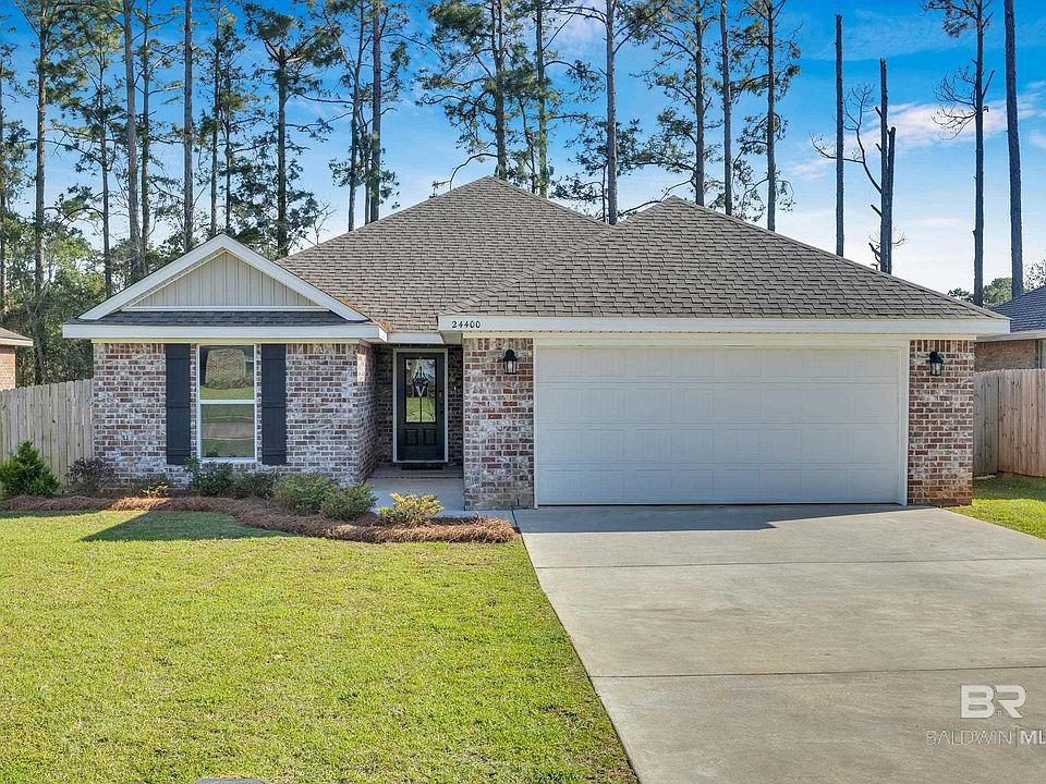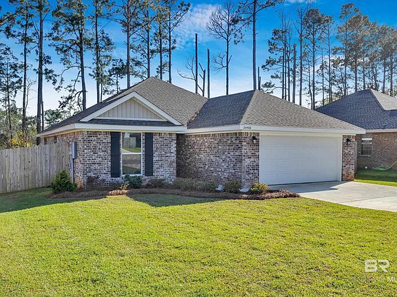 This 3-bedroom, 2-bathroom home offers 1,495 sq. ft. of comfortable living space in the heart of Loxley. With an open floor plan and a spacious living room, this home is great for relaxing or entertaining! The primary bedroom is a retreat of its own featuring a bathroom with an oversized soaking tub, a separate shower with a glass door, and two walk-in closets. Additional features include a Manabloc water system, a fenced backyard, and a double garage with an automatic door opener. You’ll love the backyard nature views and access to community amenities, including a playground and a scenic lake where you can fish, kayak, and unwind on the water (no motorized boats). Enjoy the best of both worlds: small town charm with easy access to Gulf Shores and Orange Beach for a day on the coast or a quick commute to the Eastern Shore for shopping, dining, and entertainment.Don’t miss this opportunity to make this home yours! Buyer to verify all information during due diligence.