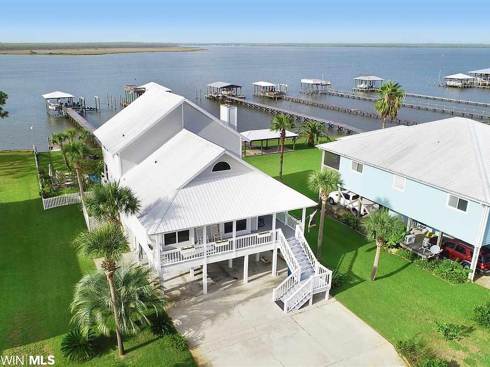 Beautiful, open water views with 75 feet of waterfront on Wolf Bay! 4 BR/4 BR home with a covered boat slip and lift, double jet ski lifts, a floating pier, a heated saltwater pool, and keep the grass green with the well water for the irrigation. Enjoy some of the of the most gorgeous sunset views on the island from either one of the large, open decks. Inside you will find an open living area with a remodeled, professional grade kitchen, gorgeous quartz counter tops, and a 6 burner Viking gas range. Continue enjoying those gorgeous views even from inside with large windows lining the main living area. The spacious master bedroom boasts a private deck, fireplace, and automated Bali blinds. The master bathroom is the ultimate retreat with a steam shower and an air bubble/water jetted soaking tub. Enjoy your morning coffee or an evening cocktail in the master bathroom's wet bar complete with a Culligan water filtration system. Host to your hearts desire, as there is a completed bonus room on the ground floor. Gulf Bay Road is extremely conveniently located off of Canal Road. Don't miss this opportunity to own Orange Beach waterfront!