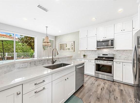 Welcome to your beautifully upgraded and remodeled townhome in the highly sought Village Niguel Gardens community. This spacious open concept home has large dining, living space, and kitchen featuring Quartz countertops, hexagon backsplash, a stainless steel farmhouse sink and stainless steel appliances. The design of the large living space has a custom shiplap accent wall and a custom California Closet media cabinet for all your tech needs. Adjacent to the living space is your large patio area that is great for entertaining with additional podocarpus trees for added privacy. You'll find the master bedroom with two walk-in closets, a bathroom that has been updated with new tile, a dual sink vanity, and Pottery Barn medicine cabinets, and light fixtures. A large 2 car garage with new epoxy floors allows for direct access to the home. This particular townhome has an opportunity to add a bedroom or loft if desired. By living in Village Niguel Gardens you are central to award-winning schools, hiking trails, shopping centers, movie theater and more! Come see this one-of-a-kind home!