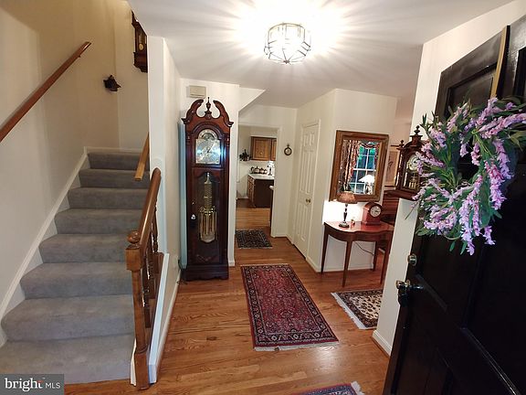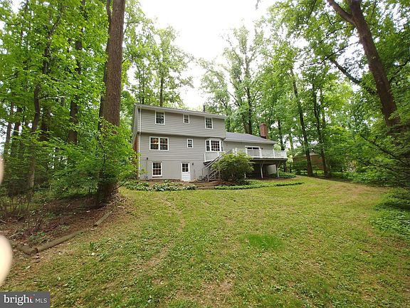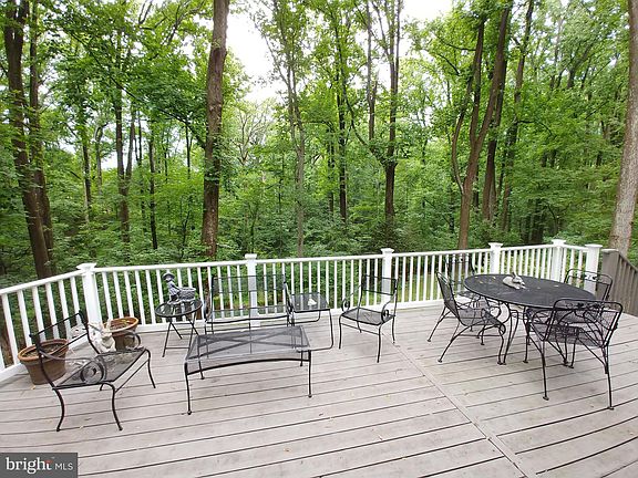 Private 1+ acre lot with stunning treed view bisected by a babbling brook. Beautiful updated home with walkout basement, oversize 2.5 car garage and large deck on quiet dead end street. Main level has beautiful refinished hardwood floors throughout. Formal living and dining rooms with crown molding, gourmet kitchen, large family room with beamed ceilings and brick fireplace overlooking trees. First floor laundry room conveniently located just off the kitchen. Second level contains the master suite with large walk in closet plus second closet, and updated master bath with granite. Three additional bedrooms and hall bath. The lower level is a light filled, walkout, partially finished basement with rough-in plumbing for adding an additional bathroom. Brand new roof just installed. Recent furnace and air conditioning upgrade, and new garage door.