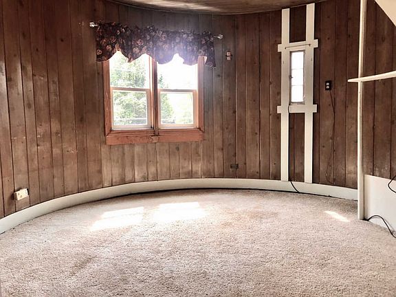 Very unique living space! 3 level silo "studio" size apartment. Unit consists of three levels. Each level is 14 ft diameter. Main level has living room and bathroom, upper level has bedroom with small closet, and lower level has a small kitchen. There is no dishwasher and a wall unit for A/C. Also, no laundry facilities. However, heat and electric are included in rent. Owner will allow a small pet. Outdoor parking. Room sizes are estimated because the rooms are round. There is also a tenant in the adjacent barn apartment.