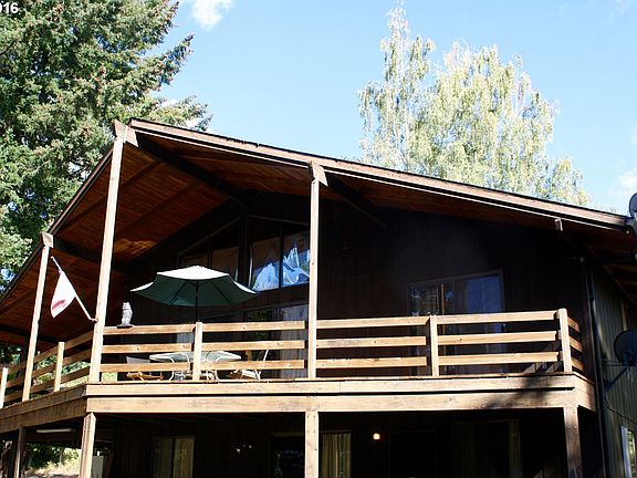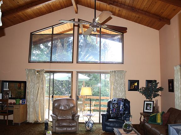 Location! Close in acreage w/future development potential.Charming chalet style home w/cathedral ceilings, exposed beams, rock fireplace, mstr on main w/laminate flr &Continental bath.Kitchen w/ Alder cabinets, island and dining area, loft above for office, big deck overlooks private setting. daylite lwr lvl w/bedrm, fam rm and brick fireplace, patio. 2 stall barn w/concrete floors and power, some fencing. Needs your designer touches!