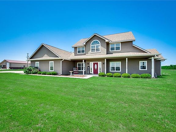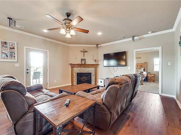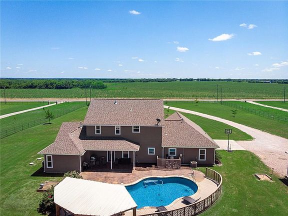 Beautiful country home with everything! This 4bed and 3bath home features almost 5 acres with private gated entry and piped fence around a portion of the property. Master has dual sinks, jetted tub, and separate vanities for him and her. Open kitchen has granite counters, breakfast bar, and butlers pantry. Large open living room with built in Yamaha sound system and speakers. Private outdoor living at its best! Gorgeous pool with covered patio and plenty of space for entertaining.There is a 1500sq ft fully functioning shop on the property that has electric, gas, and water. Shop has large over hang which allows covered parking for additional vehicles if needed. Large gun safe will convey with the property.