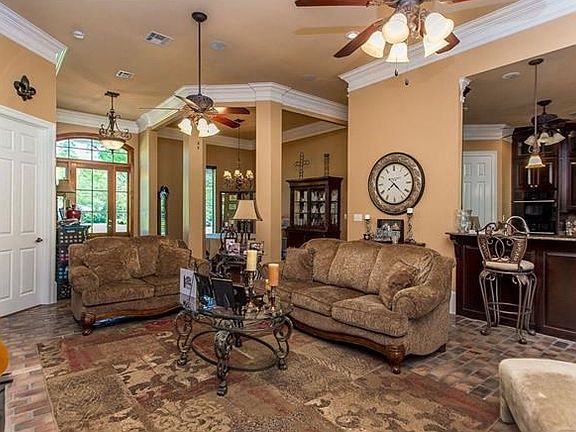 Country living at its finest! Spacious 4-2.5 bed/ bath with over 2800+ living is nestled into 11.44 acres complete with rodeo arena, pond with private beach & zip-line, large barn and outbuildings, all fenced, flood zone X, never flooded, sheds, work shops. The extras are endless with a fireplace in the master bath and matching brick pillar entry way.