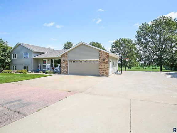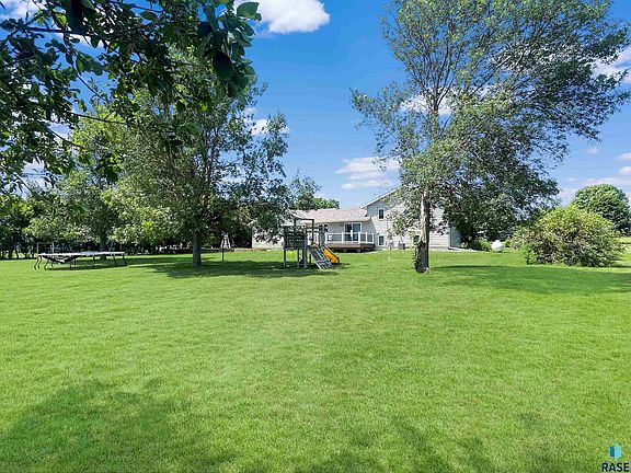 Country living on 1.15 acres in a great neighborhood just north of Dell Rapids. Huge backyard with no backyard neighbors! Multi-level home with 6 bedrooms (3 on the same level), 3 full bathrooms, heated 2 stall garage, huge parking pad on side of house, 24 x 11 storage shed. So many features to love: front porch, composite back deck (new in 2021), cement patio, vaulted ceilings - main floor, kitchen has stainless steel appliances, breakfast bar, new vinyl plank floor and carpet (main level, family room, hallway, steps), large walk-in coat closet by front door, primary suite has walk-in closet & full bath, spacious family room w/ gas fireplace, storage room with built-in shelves, Andersen windows, humidifier, water heater (2022), shingles (2022), exterior paint (2022), radon mitigation system installed, mature trees. Kitchen appliances and washer/dryer are included. Ask for features list for additional details. Welcome home!