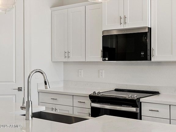 The Arlo boasts a thoughtfully designed single-story layout with 4 spacious bedrooms, 2.5 modern bathrooms, and a 2-car garage. Its open floorplan seamlessly connects the living, dining, and kitchen areas—ideal for entertaining guests or enjoying everyday moments with family. Whether you're hosting a gathering or savoring a quiet evening in, The Arlo offers the perfect blend of style, space, and functionality. This home is finished with white cabinets with hardware, quartz kitchen counters, wood-look tile flooring and carpet in the bedrooms! INCLUDED - washer, dryer, window blinds, refrigerator and MORE! Residents ENJOY parks, a tot lot, basketball court, ramadas and MORE! Each home is built with innovative, energy-efficient features designed to help you ENJOY more SAVINGS!