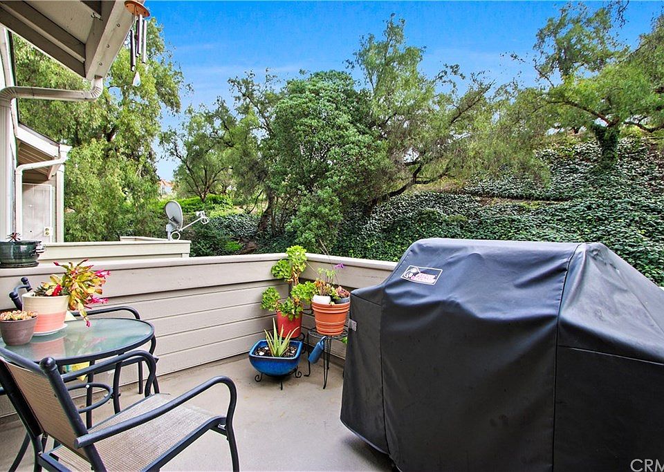 Fantastic location with a serene view of the hills and foliage. Clean and bright 2 bedrooms upper-level condo. This upstairs condo is located in the gated community of Village Niguel Terrace. This home offers a private entrance and two balconies. Upgrades include remodeled kitchen, added recessed lighting, upgraded appliances, ceiling fans, and large baseboards, all new pex plumbing, plus newer dual pane windows throughout. The living room has vaulted ceilings and loads of natural light. The bathroom has been remodeled. Stackable washer and dryer and refrigerator are included! Master bedroom has newer mirrored wardrobe closet doors. Village Niguel Terrace was designed with amenities that include tennis courts, a refreshing pool, and spa, and a residents-only dog park. Just two blocks away is Plaza de la Paz shopping center which features over 45 restaurants, specialty shops, medical professionals, and countless other services! Located just one mile from Route 73 and three miles to the 5 freeway!