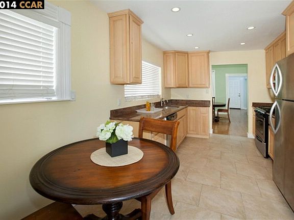 Sun filled living room with attached dining kitchen area. The Kitchen is updated with granite countertops. Updated foundation, double paned windows and Solar Panels. Fully landscaped yard with chicken coop that is included. Very efficient living and close to the freeway and shops.