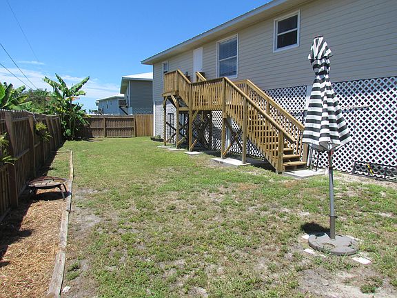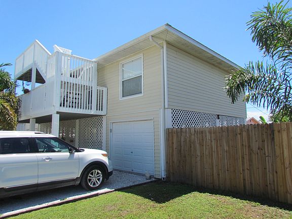 Beautiful Skyway Bridge and partial bay view, 1400 sq ft. home on a private shell road. This 3 bedroom, 2 bath, plus den home features a open concept living room/dining room/kitchen area with appliances included. Large front porch with "crow's nest" deck and a small back porch leading to a large fenced in yard. Entire house is on stilts with a huge bottom level garage and beautiful landscaping.