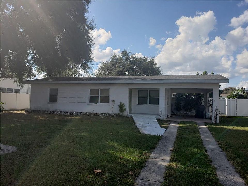 Investor gem!! Solid block home with NO HOA! Put your own unique stamp on this 2 bed / 2 bath Pool home by finishing the rehab that was started. This home will need some work and is being sold as is, please see realtor remarks for additional instructions. The master bedroom and bath are unfinished as is the kitchen. Some of the home features include a large interior utility room with washer/dryer hook ups, new bathroom vanities(master bath is uninstalled), new kitchen cabinets, fully fenced backyard and an amazing screened-in pool with swim outs and seating. - Buyers to verify all measurements