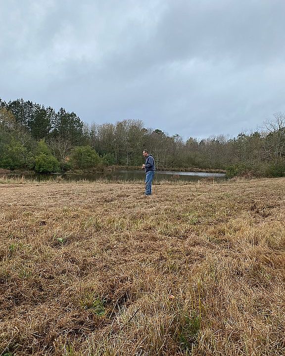 8 acres of land with a large fishing pond and one small pond. Fenced in, cleared and ready to build. Crepe Myrtles planted across the front of the property. Water meter in place. Just needs bush hogging. Pictures are after bush hogging in the back of the property by the pond. Land extends all the way around the pond. Great for hunting and fishing.