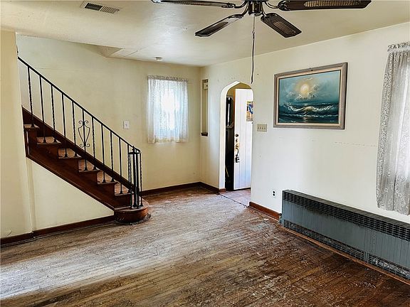 Two bedroom brick 2 story home for sale. Central air (air handler) and heating (hot water heat) are in questionable working order. Pipes in property froze and restoration company gutted kitchen. Kitchen will need to be replaced by buyer. This property is being sold in STRICLY as-is condition. Newer windows. Hardwood Floors. Covered front porch. Back yard connects to back alley for potential off street parking