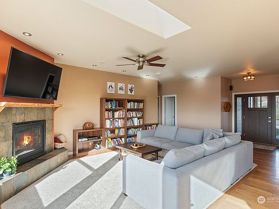 A view from the top! This gorgeous custom home is perfectly appointed with stunning Mount Baker, Twin Sisters and valley views as far as the eye can see. Step inside the light filled great room with large picture windows and cozy gas fireplace. Chef's kitchen with custom cabinetry, granite countertops, double oven, SS appliances, and walk in pantry. Spacious main floor master bedroom with en suite bath and walk in closet. Step out on the expansive deck to catch the sunset over the sparkling city lights. Daylight basement with additional bedroom, finished storage space, and separate workshop with overhead door perfect for hobbies. Large private lot with mature landscaping, fully fenced backyard with garden shed and gravel RV parking.
