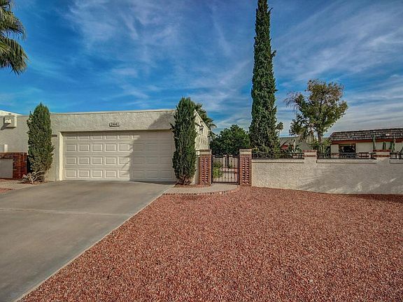 Imagine sitting on your own back patio and enjoying the view of the beautiful green golf course and peek- a- boo views of the mountains while entertaining friends or just enjoying the Arizona sunrise on a cool Arizona morning! The patio is bursting with charm with its wood plank ceiling compete with ceiling fan, brick accent wall and a custom patio design flowing into a low maintenance yard with palm trees and plenty of room for your BBQ! From the moment you arrive you are sure to appreciate the low maintenance grounds, front door with brick accent wall and planter creating an inviting approach saying "Welcome Home" Once inside you will find a spacious living room, formal dining area with coffered ceiling opening to the kitchen with numerous cabinets and counter space, built-in (see more) in microwave, smooth top range, and open ceiling with recessed lighting. EZ care neutral tile thought except living room and master. Original patio was converted to a flex space and is ideal for an office/craft room and overlooks the golf course and a 2-car garage was added! Low E dual pane windows, newer roof and A/C. Home was completely remodeled in 2009!!!