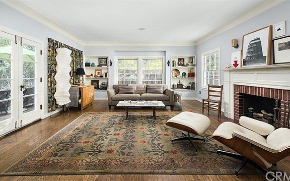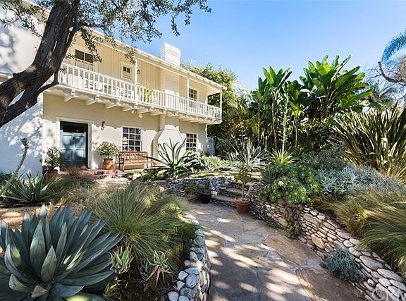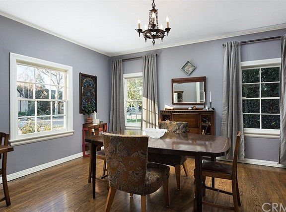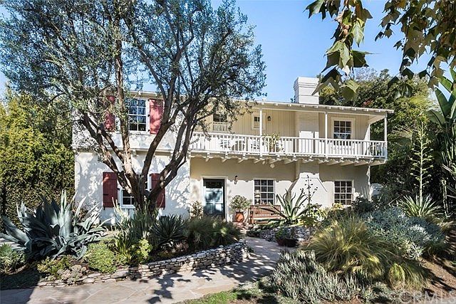 Henderson House. Historic, graceful Monterey Colonial estate home in Floral Park features vintage character, quality, and authentic charm throughout. California native drought-tolerant front landscaping frames the house from sycamore-lined Riverside Drive. Spacious, traditional formal living room with fireplace and French doors opening to entertainment and dining patio with built in gas BBQ. Elegant formal dining room with interior French doors. Large country kitchen features charming custom woodwork, marble counters, beamed ceiling, Viking range and refrigerator, additional prep sink, and work table. Large family room with fireplace and picture window offers lovely view of pool and deck areas. 4 sunny bedrooms including spacious master suite with private bath and walk-in closet. 3 upgraded, vintage-style baths. Hardwood floors throughout. Sound system throughout and security system. Balustraded balcony along front facade affords relaxing tree-top view. Backyard retreat features expansive and serene covered wooden deck dramatically cantilevered over waterfall, stream, and series of cascading pools. Adjoining pebbled, heated swimming pool includes welcoming beach entry. Mature landscaping offers shade and privacy. Raised bed vegetable/herb garden, tool shed, updated garage workshop, electric driveway gate, huge lot backing to Santiago Creek. Riverside Drive is among the lightest traffic streets in Floral Park. Historic home has Mills Act for greatly reduced property taxes!