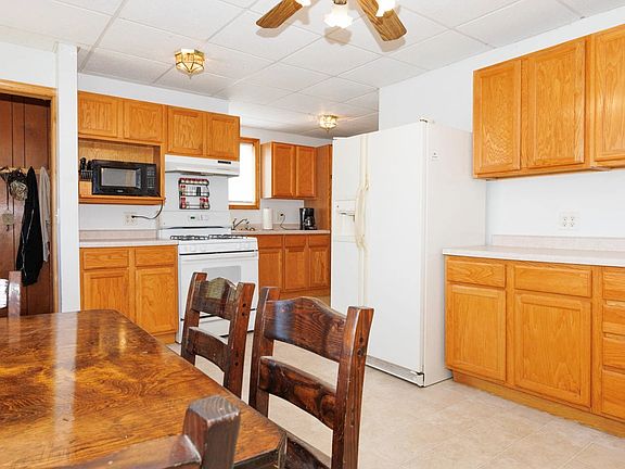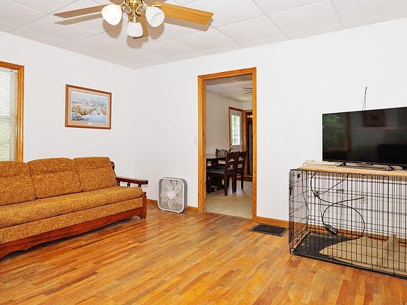 Discover this well-maintained 2-bedroom, 1-bath home ideally located just seconds from Lake Bloomington! Inside, you'll find an inviting eat-in kitchen featuring ample cabinet storage and all appliances included. A full basement offers plenty of space for storage Recent updates include a new HVAC system (2021), roof (2016), windows (2015), and brand-new siding (2023), ensuring peace of mind and energy efficiency. Out back, a standout feature awaits: a massive 1,500 sq ft 4-car machine shed/garage built in 2004 with durable concrete floors-perfect for hobbies, storage, or a workshop. Whether you're looking for a weekend getaway or a year-round residence, this property offers comfort, utility, and convenience near the lake. Don't miss out!