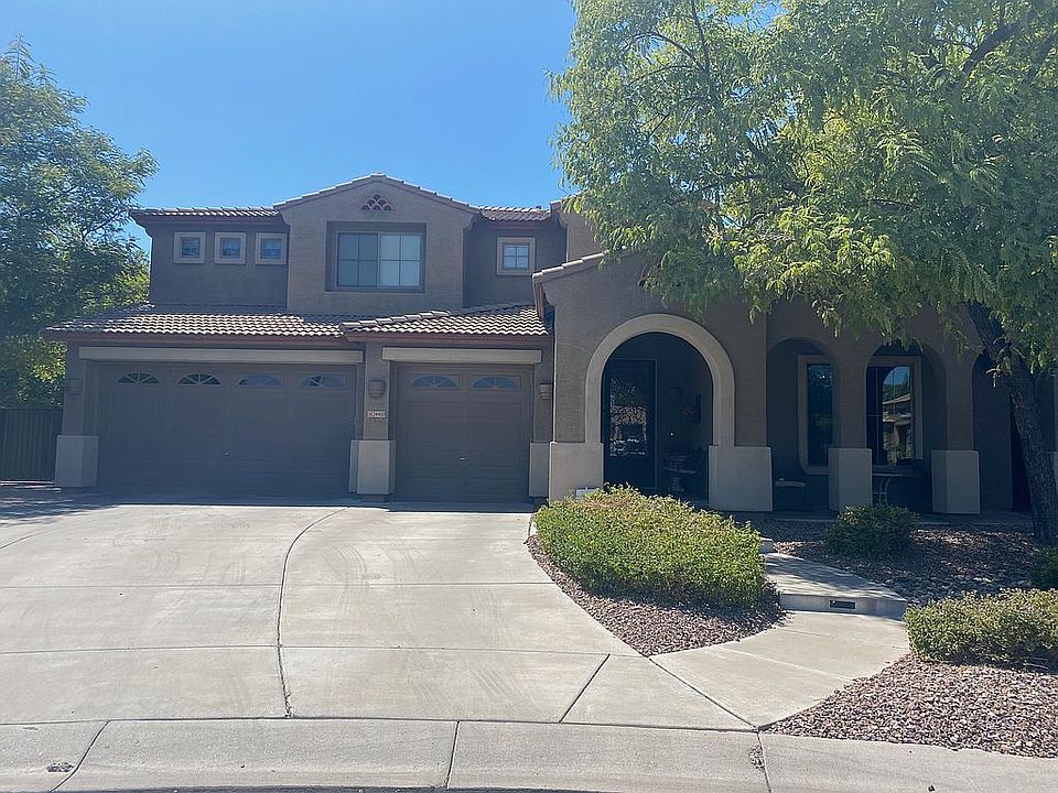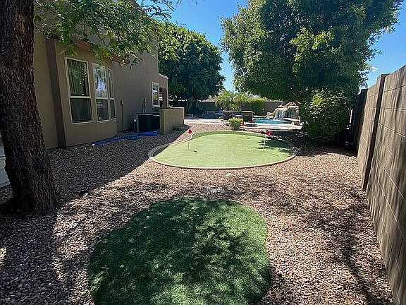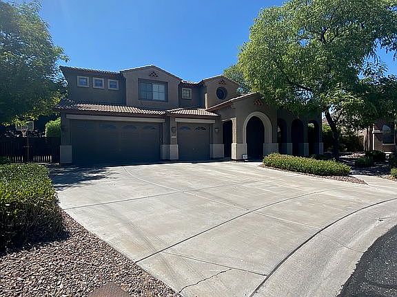 This home is truly a gorgeous estate in the El Dorado community in Mission Ranch. Beautiful curb appeal with a 3 car garage and inviting landscaping. Premium lot. Enter into beautiful tile floor with deco design and soaring ceilings. Formal dining area with spectacular mountain views. Formal living room has an elegant fireplace. The gourmet kitchen has an abundance of custom cabinets, electric cooktop, microwave, island with breakfast bar, kitchen dining area. Spacious family room has a cozy fireplace and dry bar. The master retreat is located on the lower level with a private retreat above. Both retreats have their own gas fireplaces. The office is located on the lower level with a private bath. Walk up the stairs along the custom stair rail and you will see another sitting area along with 4 generous size bedrooms. Two bedrooms share a jack and jill bathroom. The other two bedrooms and full bath are located on the opposite side of the private sitting area upstairs. The entertainers dream of a backyard has a large covered patio, large trees canopy over built-in barbecue grill and bar area, fire pit, resort style pool with built-in slide and waterfall grotto, spa, putting green, dog kennel, and sports court with beautiful mountain view.