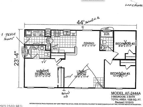 • Total interior livable area: 1,026 sqft