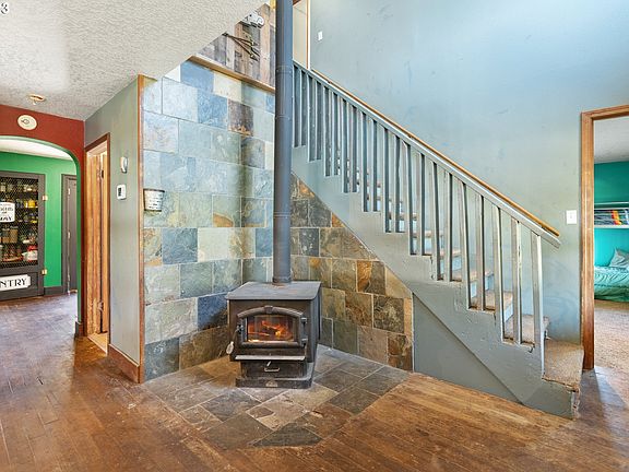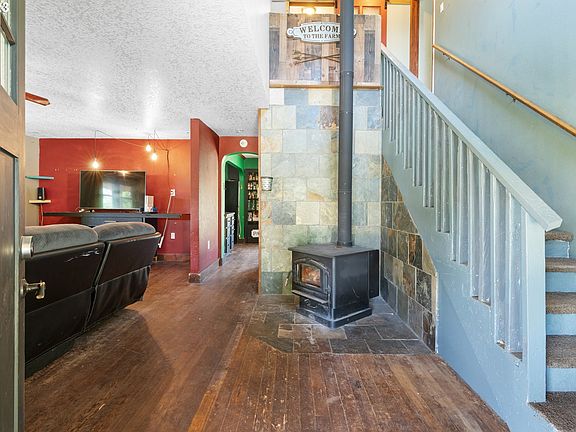 - Features: Ceiling Fan, Hardwood Floors, Vaulted Ceiling, Wood Stove