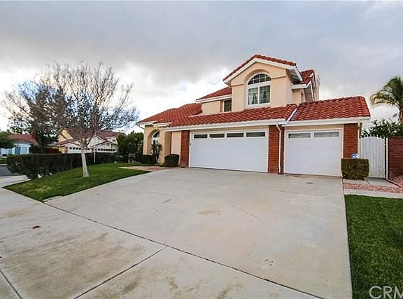 Stunning former model home located in Sunnymead Ranch. This home backs up to Sugar Hill Elementary resulting in only one neighbor adjacent to the property. This home has been highly upgraded throughout with upgraded ceramic tile floors throughout the downstairs. The entry leads into the living room which has vaulted ceilings with a beautiful chandelier followed by the formal dining room with overhead ceiling fan and sliding door access to the side patio. Kitchen has granite slab counters and stainless steel range with built in microwave as well as a dishwasher and stainless steel sink. There is also an informal dining area between the kitchen and family room. The family room has a brick fireplace which is equipped with a fake log with gas that can be removed in favor of burning wood. Also adjacent to the family room is a wet bar complete with granite counters and stool height bar. There is a half bathroom downstairs next to the wet bar. The master bedroom has raised ceilings, a balcony with incredible mountain views and a master bathroom that has plenty of cabinets, a large soaking tub, separate shower and large walk in closet. The backyard is stunning with very well producing Meyer lemon, lime and orange trees. This community has beautiful trails throughout highlighted by the community lake, as well as clubhouse and fitness center. This home is located conveniently close to shopping, freeway access as well as an amazing selection of restaurants and entertainment.