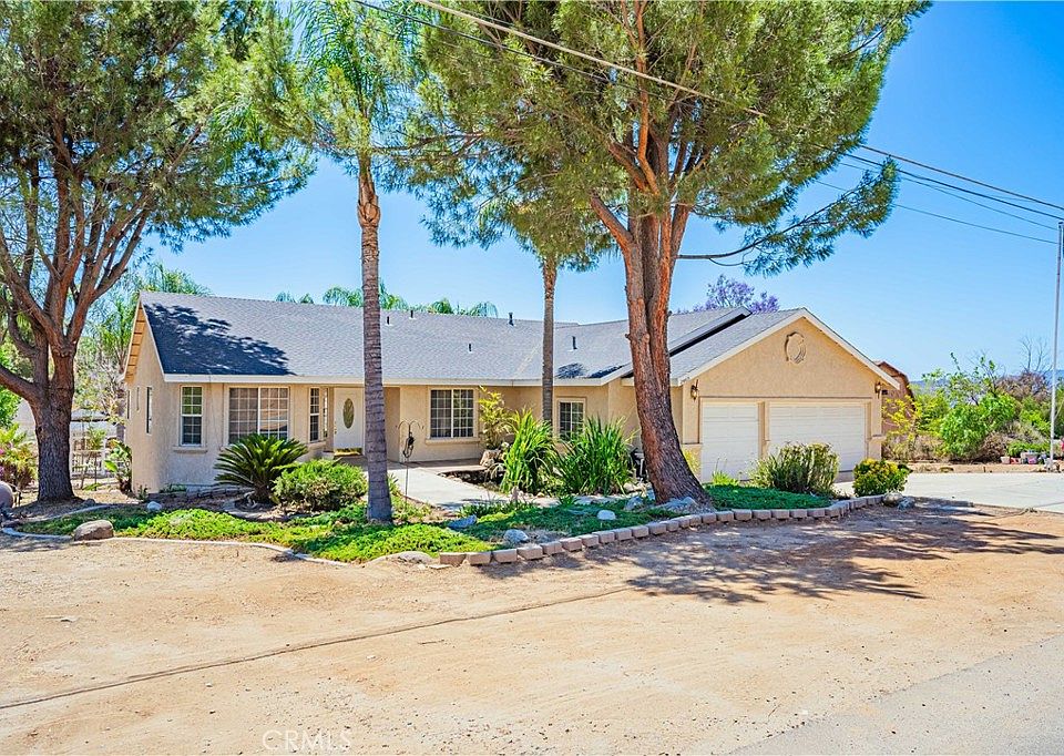 The main house is a single-level home offering 3 bedrooms, 2 1/2 baths, an open floor plan with paid off Solar, new carpet and new paint. Adjacent to the main residence, the additional dwelling unit (ADU) is a true gem. Boasting two bedrooms and two bathrooms, this separate living space provides privacy and versatility. Whether you envision it as a guest house, a home office, or an in-law suite, the ADU offers endless possibilities to suit your needs with approximately 1152 sf. built in 2003 and on a permanent foundation. In addition, there are two stunning koi ponds, a Gazebo, a Large Shed, a 3-car garage, a Chicken Coop, a Roundpen, and a host of desirable amenities.