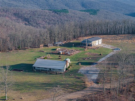 Ozark Mountain Paradise. Amazing 42.29 acres bordered by thousands of acres of the Ozark National Forest situated at 2300 feet above sea level – one of the highest points in Arkansas. Relax on the deep porches of the 1800 sq. foot home/lodge, 3 bed/2 bath with open floorplan, loft and added storage. Bonus 30x50 insulated shop with another covered porch and 2 bays. Chicken coop, orchard and garden beds complete this homestead in the sky. Multiple uses beyond residential including short-term rental and recreational business. Perfect for all your outdoor activities including nature watching, trail riding, hiking, biking, rock climbing and hunting. Views everywhere. Abundant wildlife including black bear, turkey and deer. In the White Rock, Lake Fort Smith, Mill Creek and Frog Bayou area where Crawford, Franklin, Madison and Washington counties meet. High speed internet and good cell service.
