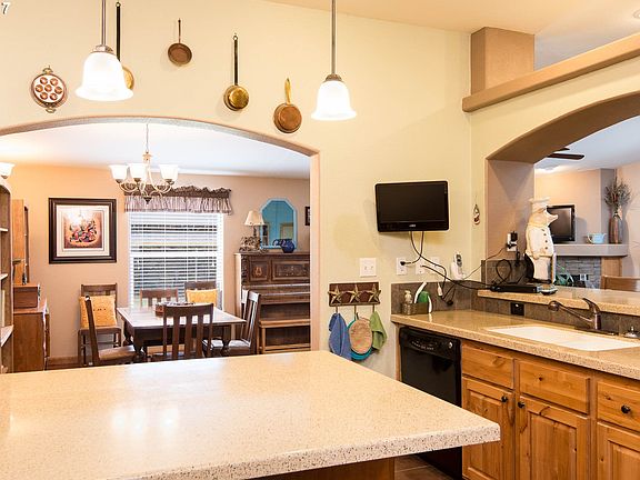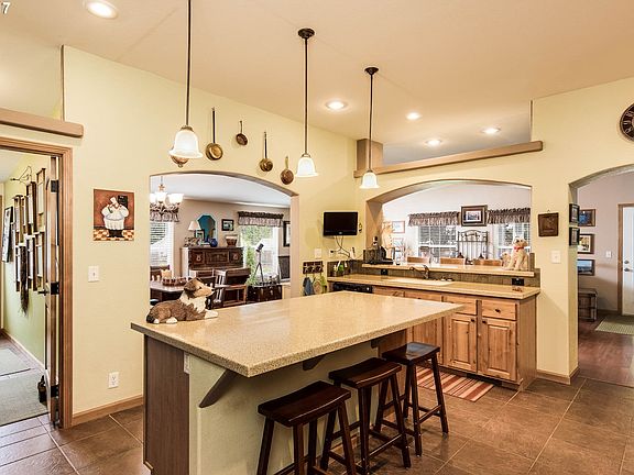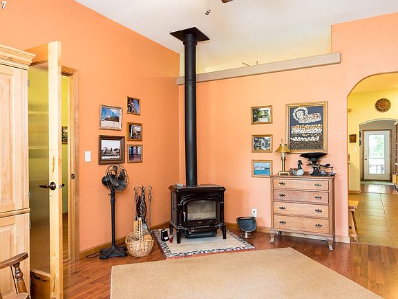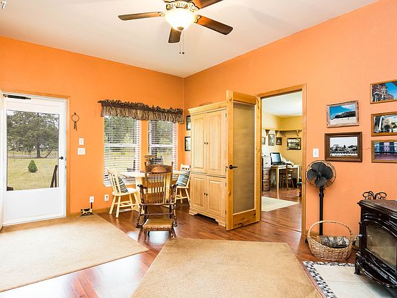 Custom 2010 Palm Harbor triplewide, 2300sqft. Gorgeous sanctuary on 5 private acres. 3 BRs plus Den/office/4th BR. MBR suite w/13x13 bathroom, soaking tub, walk-in shower, double vanity, 10x10 closet. Formal LR w/wood stove. Inviting FR w/FPL. Gourmet kitchen w/lg island, eat at bar. Formal dining room. 30x46 RV garage/shop & 2 carports, 24x24 pole barn, greenhouse, outdoor kit/BBQ, patios, fish pond.