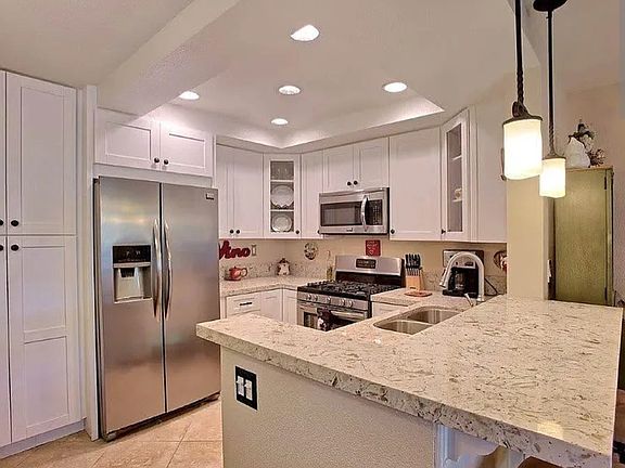 Gorgeous one bedroom ground level condo located in the gated community of Village Niguel Terrace. Welcoming patio sets the tone for this beautiful home. It faces the greenbelt and park. You'll fall in love with this upgraded home offering an open floor plan with the kitchen opening to the living room and separate dining room. Plantation shutters throughout. Tons of cabinet space and quartz counter tops make this an ideal place to call home. All stainless steel appliances in the kitchen. Entering the hallway you have a double door storage area. At the end of the hall, there is an upgraded granite counter topped with dual linen cabinets. The bedroom to the left is roomy and can hold your bed, end tables, dresser, etc. Two closets in this room - you won't find that in another one bedroom. The bathroom has a tub/shower combo and nice vanity and storage cabinet. One car garage and one additional parking permit space. Association pool, spa, park and tennis courts. Close to shopping, dining and entertainment. See this condo and your search for a new home will be complete.