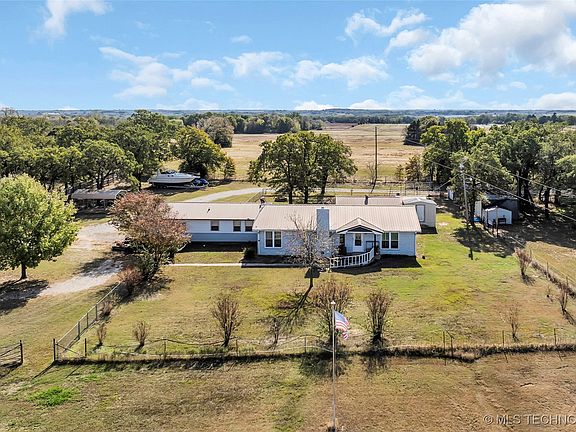 This property offers a perfect blend of spacious living and serene rural surroundings, situated on 9.92 acres. The home features four bedrooms and three full bathrooms, providing ample room for family, guests, or home offices. The large living area, complete with a cozy fireplace, creates a welcoming space for relaxation. The kitchen boasts ample cabinet space, making it functional for cooking and storage. In addition to the home’s interior, the property offers a two-car garage for vehicle storage and extra space, as well as a one-car carport, perfect for additional parking. Outdoors, you'll find a chicken coop, ideal for those interested in hobby farming, and a pond stocked with fish that never runs dry, offering both beauty and a peaceful retreat. With nearly 10 acres of land, this property provides endless possibilities for outdoor activities, gardening, or further development.