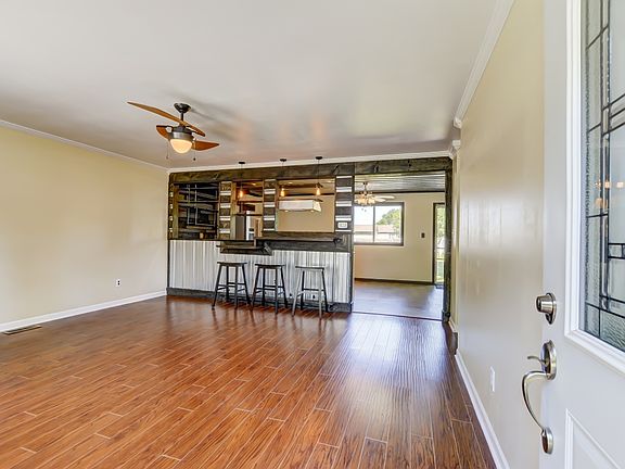 Country living and still minutes from town in this 3 bed 1 bath ranch. This home is situated on nearly a half acre in a very quiet country neighborhood. 1 car attached garage but still plenty of parking and space in the driveway. Front porch takes you to an open concept living, kitchen and dining space. Your eyes will be immediately drawn to the feature wall/breakfast bar leading into the kitchen. This kitchen is completely custom and features pantry space, open shelving and a metal ceiling. Good sized laundry room off the kitchen. There are 3 bedrooms and a full bath down the hall. The back yard is fenced and there is a newer deck that will be perfect for entertaining. There's already space for your fire pit just in time for summer! Other updates include septic system in 2021, metal roof less than 5yrs and water heater in 2018. This is move in ready so call today for your private showing!