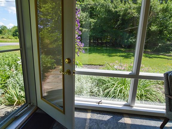 Very special 4 bedroom home with expansive views on scenic country road. Thoughtfully enhanced with maple and cherry hardwood floors, south-facing passive solar sun room and cheerful main level master bedroom suite. Timeless features like solid wood doors and trim, crown molding, built-in bookcases and wood-burning fireplace. Spacious kitchen with radiant floor heat, amazing laundry room and possible 5th bedroom. Lush perennial gardens and apple trees dot exterior landscape where you'll also find a large covered deck, 2-car attached garage and large carport for RV or boat storage. Don't wait!