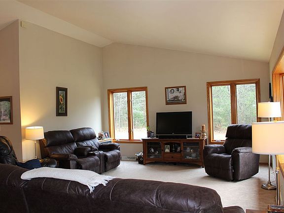 Minutes to Castle Rock Lake sits this great family home on 9+ acres. Featuring 4 bedrooms & 3 full baths, it's warm and inviting with an open concept floor plan, vaulted ceilings and great natural light. First floor has a nice, big living room, dining area with patio doors to big, back deck and great kitchen with breakfast bar, as well as the Master bedroom suite, main level laundry & 2 additional bedrooms. Downstairs, the finished lower level has a big family room, 4th bedroom, full bath and shop currently set up as a salon. Great storage in the 3 car attached insulated garage and 60x40 .