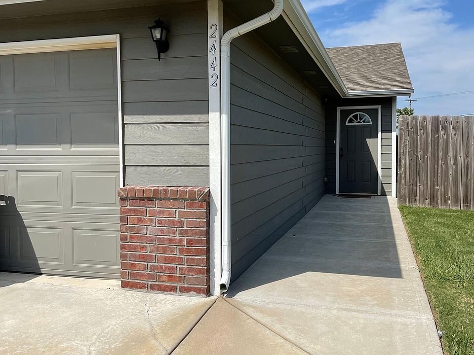 Located in quite Kechi neighborhood, direct access to highway 254 for easy Wichita access. Freshley painted, open floor plan with stained floors, lots of beautiful cabinetry. Bedrooms fully carpeted, full hall bathroom and full bathroom in master bedroom, with walk-in closet. Two car garage with direct entry into the home. Partially fenced yard with direct access to side patio. Tenant sets up service and pays all utilities. Fridge and Washer/Dryer are not included, they are tenant's responsibility. Landlord takes care of lawn, if pets, pet waste is tenants responsibility. Pets allowed (some restrictions) $200.00 non-refundable pet fee per pet, with $50.00 per month, added to rent total. Non-smoking inside of home.