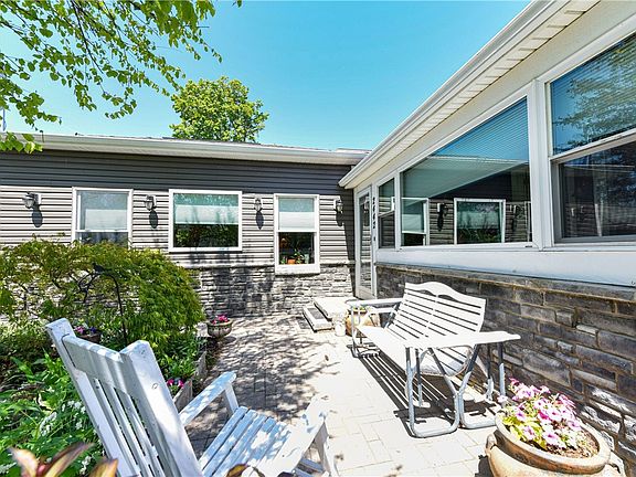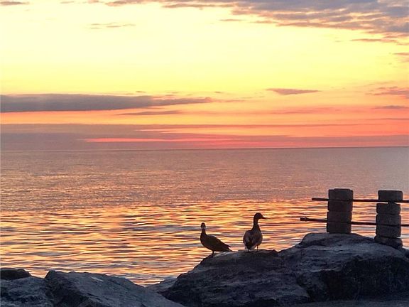 Vacation at home on beautiful Lake Ontario and wake up to a stunning sunrise every single day! Gorgeous waterfront ranch is 1,600+ sf, 2+beds (3rd bed option), AC, marble FP, HW floors & ceilings, great new appliances, LG washer/dryer big kitchen w/Amish made cupboards, large bright dining room, Levolor blinds throughout, high ceilinged living room w/lake view, media room/office, 2 porches, siding, 1 car garage/storage up, big attic, stone front patio/walkway, beautiful lush gardens, Amish made white pergola & large Trex-like deck lakeside, arbor, fully fenced, unique landscaping, privacy fences & planters keep you private, solid break wall plus large boulders ($43K from DEC) at the lake, never once any flooding here, sandy bottom out to 100 yards in the lake only waist high, boat heist, quiet walkable/bikeable community neighborhood, fun & friendly neighbors, Greece w/Hilton Schools, great swimming, kayaking, boating, close to Braddocks Bay Beach, fishing & famous wind sailing at the ponds, biking along the lake, private road safe for kids/dogs. New roads, sidewalks & sewers coming this summer. Wake up & go to sleep w/the lake lapping at the shore! Delayed negotiations 5/23 5pm