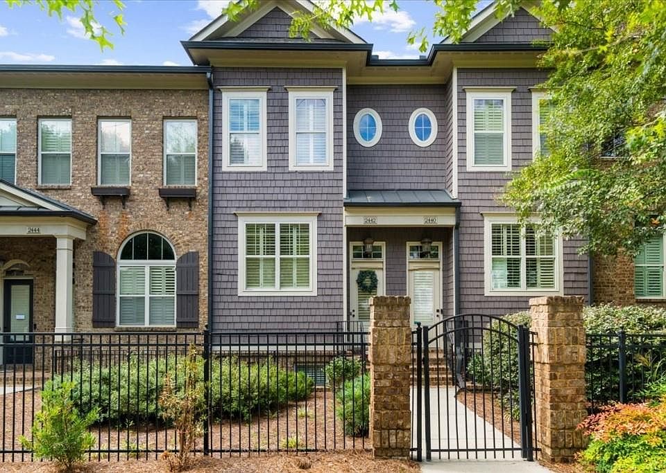 Beautiful Gated Townhome in the Heart of Chamblee Welcome to 2442 Gatebury Circle, a stylish and well-maintained townhome located in the highly sought-after gated community of Turnbury. Perfectly positioned just steps from restaurants, shops, coffee spots, and only minutes to Lowe's and major interstates, this home offers convenience at every turn. Inside, hardwood floors flow throughout an open-concept main level. The kitchen boasts granite countertops, abundant cabinetry, stainless steel appliances, a spacious island with beadboard detailing, and elegant finishes. A sunlit dining room sets the stage for entertaining or intimate meals, while the fireside family room provides a warm, inviting retreat. Step outside to a covered porch, ideal for morning coffee, evening gatherings, or weekend grilling. Upstairs, hardwood floors continue throughout, the expansive owner's suite features a spa-like bath with double vanities, a garden tub, a separate shower with a new glass door, and a generous walk-in closet. A spacious guest suite with a private en-suite bath provides comfort and privacy. Thoughtful touches like thick crown molding, shiplap in the half bath, and a statement wall in the upstairs bedroom add charm and designer flair. The lower level offers a flexible bedroom suite with a Murphy bed, brand-new carpet, and its own full bath, perfect for a home office, gym, or guest accommodations. With its unbeatable location and quality craftsmanship, this townhome is a rare find in one of Chamblee's most desirable communities. Don't miss the opportunity to make it yours!