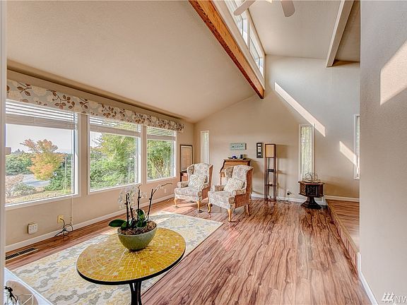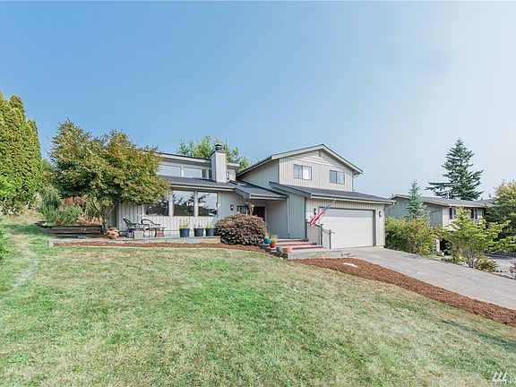 Updated home in friendly Ferndale! Amazing view of Mt Baker & even a peek-a-boo view of the Bay! Open living room features a cozy fireplace, and clerestory windows that bathe the home in natural light. Enjoy privacy & shade on the back patio. Large backyard & garden shed! New roof, furnace, water heater, and skylights in 2016. Keep cool in the summer & warm in the winter! Heat pump offers central air & forced air heat. Central vac & all appliances included! Make this your home sweet home today!