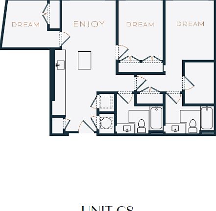 Choose from spacious one-, two-, and three-bedroom apartments featuring large windows, nine-foot ceilings, and open layouts. Each apartment home includes plank flooring in living areas, carpeted bedrooms, and contemporary kitchens with quartz countertops, ample cabinet space, and a moveable island for added flexibility. Enjoy the convenience of an in-unit washer and dryer and elegant ceramic-tiled bathrooms.