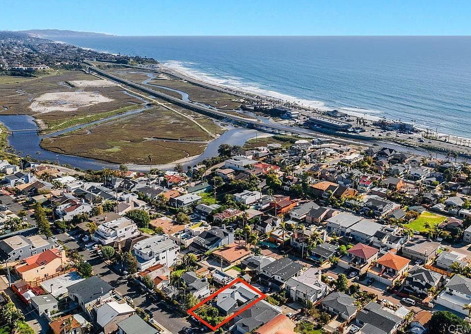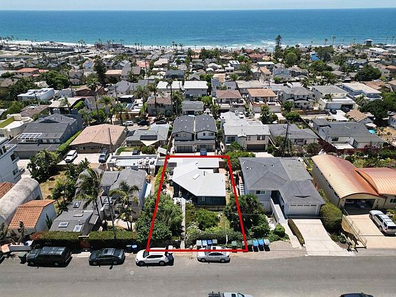 Whitewater ocean views! Cardiff Walking District 5000sf lot. Build your dream home or development opportunity with R-11 zoning. Value is in the land and location. Original 1924 main house has 2 bedrooms, 1 bathroom. Primary suite added in 1985. Conveniently located to beach, shops, restaurants, Cardiff Rail Trail, San Elijo Lagoon trails, Glen Park, etc... All within about 4-5 blocks. Check out virtual tour 2 to see video of panoramic ocean views from potential new construction.