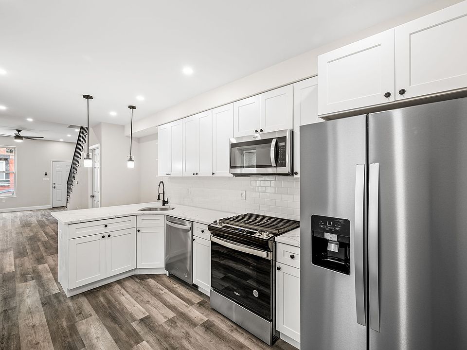 Welcome to this newly renovated home in bustling Brewerytown! This stunning 3-bedroom, 2.5-bathroom home offers the perfect blend of modern luxury and classic charm. As you step inside, you'll be greeted by 1,800 sq ft of meticulously designed living space, boasting brand new finishes and stylish upgrades throughout. The open-concept layout seamlessly connects the living, dining, and kitchen areas, creating an inviting atmosphere for both relaxation and entertaining. Prepare to be wowed by the new stainless steel appliances adorning the kitchen, where culinary creativity knows no bounds. Recessed lighting illuminates every corner, casting a warm glow on the pristine quartz countertops and ample cabinet space. The first floor also features a stunning powder room just off the dining area, featuring custom tile and cabinet space. Venture upstairs to discover three comfortably sized bedrooms, each offering a peaceful retreat from the hustle and bustle of the city. You will find your brand new washer and dryer and newly redone common bathroom on the second floor, in addition to two of the three bedrooms. On the third floor, the primary suite awaits, complete with an oversized closet and an attached primary bathroom featuring double vanity sinks, custom tile and an oversized shower a haven for relaxation and rejuvenation. Outside, the expansive backyard beckons with endless possibilities for outdoor enjoyment and entertainment. Whether you're hosting a summer barbecue or simply unwinding under the stars, this outdoor oasis is sure to delight. Additional features include central air for year-round comfort and convenience, and a large unfinished basement, perfect for storage or additional entertainment. Schedule a showing today! Owner pays for trash, sewer and trash removal. Tenant pays for rent of utilities.