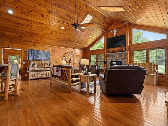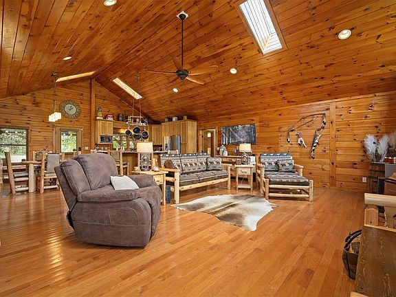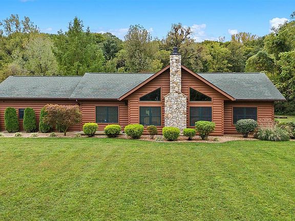 Breath-taking log cabin on 3.6 incredible Horse friendly acres. This rustic retreat features a Geo-Thermal Heating System, Custom Hickory Cabinets, Granite counters, Whole house vacuum and so much more. Natural Lighting pours into the open floorplan from multiple skylights. The Lenox wood burning fireplace is the perfect place to cuddle up to in the chilly evenings. The Enormous Outbuilding offers endless possibilities for storage and hobbies. The custom Patio is perfect for relaxing or watching wildlife walk by in the large back yard. This peaceful, private setting is ideal for those seeking a country lifestyle with modern comforts.